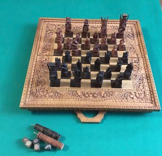 Scacchiera legno intagliato 44x44cm