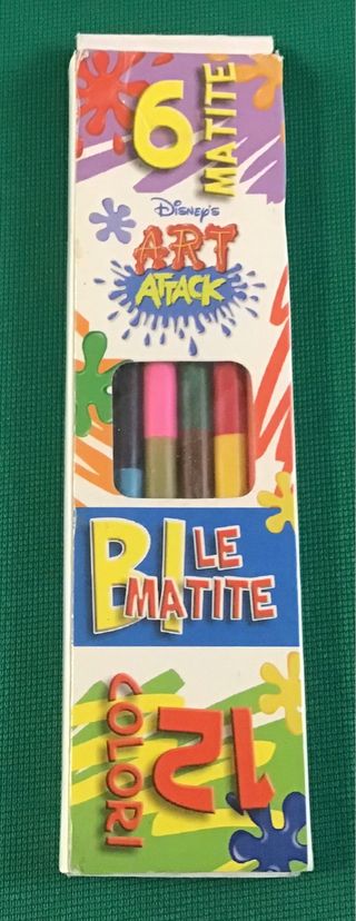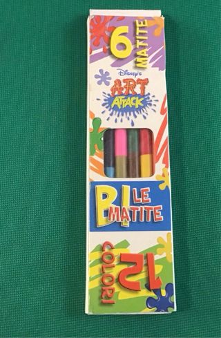 Disponibili matite colorate Disney's Art Attack. Confezione da 6 matite, 12 colori in totale. Le matite sono in buone condizioni, perfette per disegnare e colorare. - 6 matite colorate - 12 colori diversi - Perfette per bambini e ragazzi