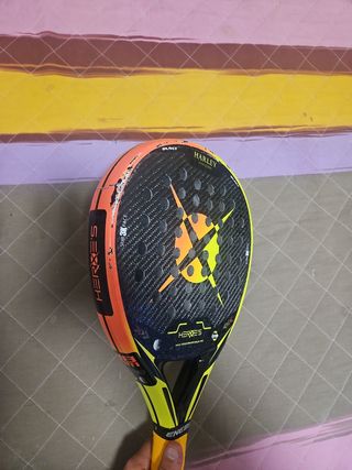 Racchetta da padel Harley Evolution con un design moderno e accattivante. - Superficie in carbonio. - Bilanciamento ottimizzato. - Colore giallo e arancione.