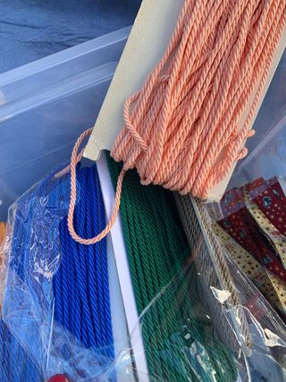 Lotto di cordoncini colorati per passamaneria. Il prezzo al metro del cordoncino è di 0,40 centesimi. Possibilità di acquistare il lotto intero ,ma prima chiedere il prezzo che può variare in base all'articolo che si sceglie .