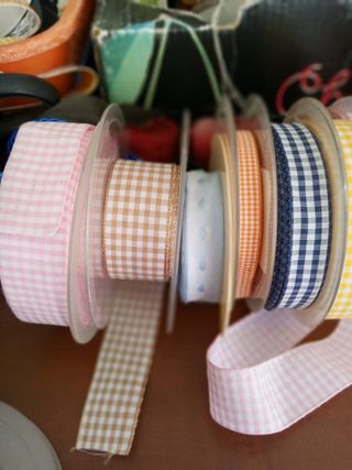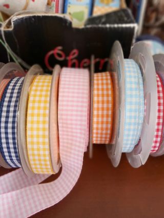 Stock di nastri in cotone con fantasia a quadretti, ideali per decorazioni e lavori creativi. - Nastro blu a quadretti - Nastro giallo a quadretti - Nastro rosa a quadretti - Nastro arancione a quadretti - Nastro azzurro a quadretti - Nastro rosso a quadretti