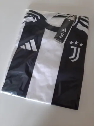 Maglietta ufficiale della Juventus, marca Adidas, taglia M. Nuova con cartellino. - Design a strisce bianche e nere. - Logo Adidas e stemma Juventus. - Tre stelle sopra lo stemma.