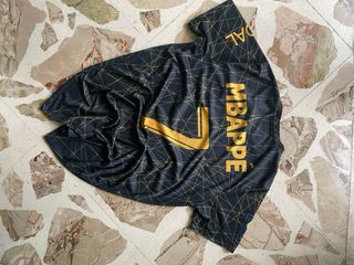 Maglia del Paris Saint-Germain, taglia M, usata pochissimo. Design moderno con pattern geometrico. - Colore nero con dettagli oro. - Logo Paris Saint-Germain ricamato. - Sponsor Qatar Airways. - Logo Ligue 1 Eats sulla manica.