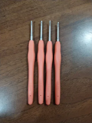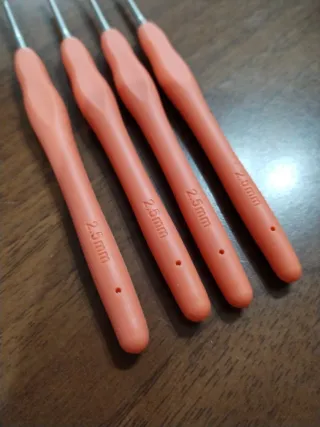 Set di 4 uncinetti per lana con manico ergonomico gommato color pesca. - Misura: 2.5mm - Materiale: Metallo e plastica