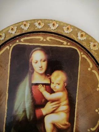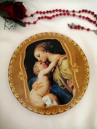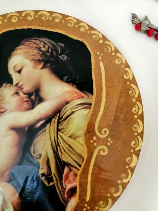 Decoupage tondo legno Madonna Bambino Oggettistica