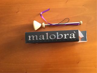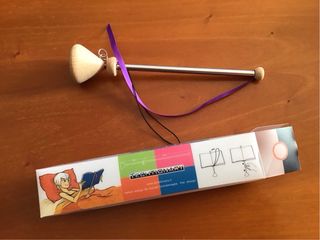 Accessorio per libri Malobrá, ideale per tenere fermi i volumi. - Materiale: legno e metallo. - Dettaglio con nastro viola.