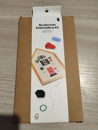 Kit da ricamo a tema natalizio di Flying Tiger Copenaghen. Altezza 22,5 cm. Nuovissimo - Include fili colorati per il ricamo. - Cornice in legno a forma di casa. - Ago da ricamo incluso.