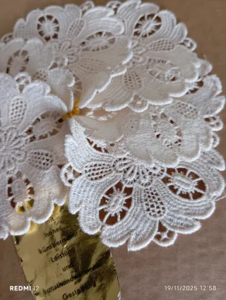 Delicato pizzo rotondo di colore beige, perfetto per decorazioni o progetti creativi di cucito, artigianato. - Motivo floreale. - Bordo smerlato. - Diametro cm 7. - Condizioni buone-ottime come da foto. Spedizione disponibile. SIRACUSA. Vendo a 10 euro sei pizzi vintage di colore beige.