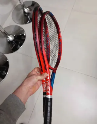 Racchetta da tennis Yonex VCore 100, ideale per giocatori che cercano potenza e controllo. - Colore rosso e blu. - Design moderno.