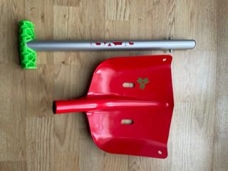 Pala da neve Access di colore rosso, con manico in alluminio e impugnatura verde. - Pala in metallo rosso. - Manico telescopico in alluminio. - Impugnatura ergonomica in plastica verde.