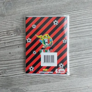 Portafoto a tema Milan, con grafica Trattoria del Rossonero e Le Ricette dei Campioni. - Illustrazione di un diavoletto chef. - Stile fumettistico colorato.