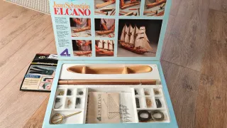Modello della barca Juan Sebastián Elcano di Artesanía Latina. Pressa a stecche regalo - Scala 1:250. - Lunghezza: 457 mm. - Altezza: 272 mm. - Manica: 54 mm.