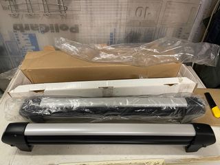 Portasci in alluminio e plastica nera, con serratura pari al nuovo. usato una sola volta. Ideale per trasportare attrezzatura da sci o snowboard. - Capacità per tre paia di sci. - Capacità per due snowboard. sistema di ancoraggio per rotaie con aste.