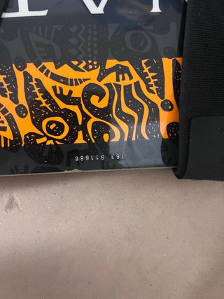 Tavola da snowboard Fanatic da 163 cm con un design accattivante in nero e arancione. Include le assicurazioni. Una delle prime tavole del mercato degli anni '80, con scarponcino rigido, design con motivi tribali e lettere bianche. Assicurazioni nere incluse. Le scarpe non sono incluse nella vendita.