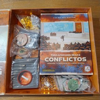 Gioco da tavolo Terraforming Mars, con espansione Conflitti e schede aggiuntive ufficiali a doppio strato. Contenuto: - Gioco base Terraforming Mars. - Espansione Conflitti. - Schede ufficiali a doppio strato.