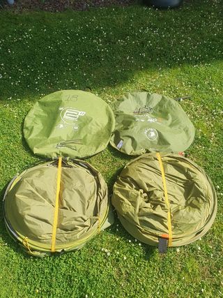 In vendita due tende da campeggio Quechua Arpenaz 2, ideali per 2 persone in ogni tenda. Capacità: 2 persone. Dimensioni: 200 cm x 120 cm. Peso: 2,4 kg.