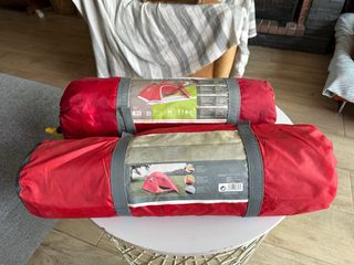 In vendita due tende da campeggio, ideali per campeggio o escursioni. Ognuna adatta per due adulti. Completamente nuove, mai usate né estratte dalle rispettive borse. Colore rosso. Include borsa per il trasporto.