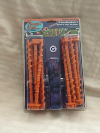 Set di picchetti in metallo e plastica dura per il campeggio. Non sono stati usati. Sono venduti insieme o separatamente. Ci sono 37 in metallo e 26 in plastica dura. - Materiale: metallo zincato e plastica dura. - Design a forma di J per un supporto extra. - Ideale per tende, tende...