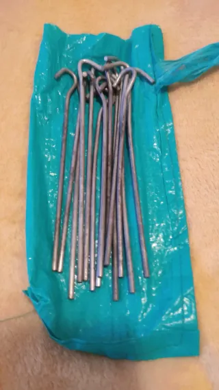 24 picchetti metallici per fissare tende da campeggio resistenti. Buono stato. Per assicurare la tenda al suolo, per il campeggio, le escursioni... - Realizzati in metallo - Lunghezza circa 20 cm. Spedizione tramite Wallapop. Consegna nella zona di Sarrià o fermata della metropolitana L3 Maria Cristina / Bna