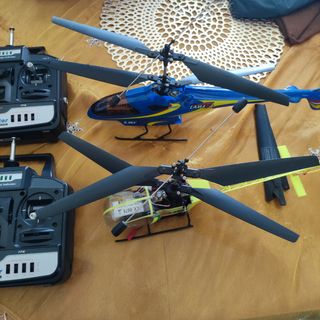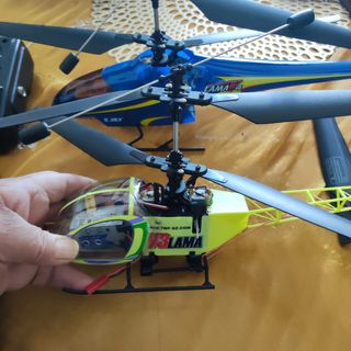 n 1 elicottero bellissimo esky lama v3 giallo in buono stato con pale che gira al minimo sul pavimento ma non so se vola ,e non ha mai volato n 1 elicottero bellissimo esky lama v 4 azzurro in buono stato con pale che girano al minimo sul pavimento MA DA CAMBIARE STABILIZZATORE non so se vola e non ha mai volato Belli anche da tenere nelle stanze per ragazzi e altro Modifiche sulle radio per poter mettere le stilo o le lipo 1 radio a i contatti un po ossdidati N2 radiotrasmittenti n 1batteria lipo e 1 carica batterie lipo,4 pale ricambio