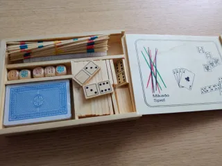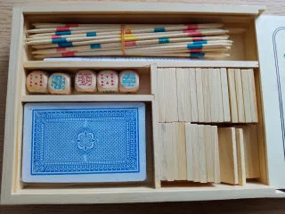 Set da gioco Mikado Spiel in legno. Nuovo - Bastoncini colorati per il gioco. - Include dadi e carte da gioco. - Custodia in legno per riporre tutto. Spedizione solo con Poste Italiane
