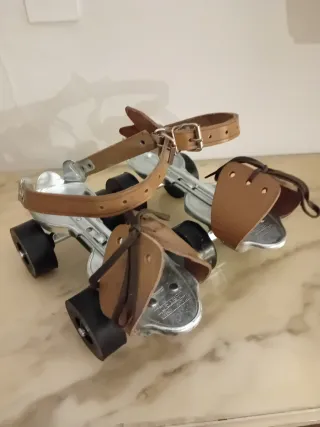 Pattini a rotelle Ca-Mi,vintage anni 60'/70'da collezione,modello per bambini regolabile dal 25 al 36,struttura in metallo,cinghia in cuoio,ruote in gomma con cuscinetti a sfera brevettati,Nuovi mai utilizzati nella loro confezione originale,molto belli condizioni eccezionali.
