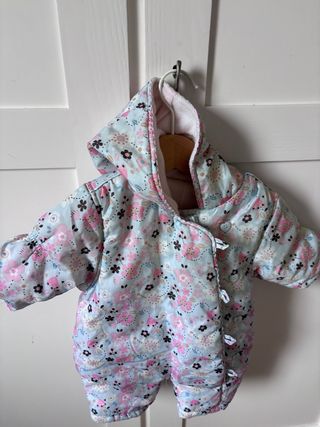 Tuta da sci per bambino con una graziosa fantasia floreale. 1/3 mesi - Colore di base azzurro. - Motivo con fiori rosa e marroni. - Cappuccio integrato.