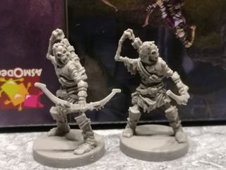 Set di miniature di scheletri arcieri. - Due scheletri in posa dinamica. - Uno con arco pronto all'uso. - Dettagli curati per un aspetto realistico. Da montare