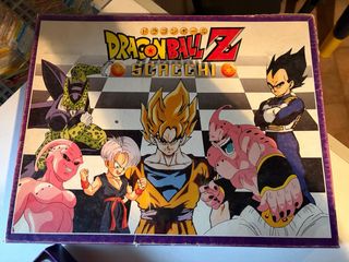 Scacchi a tema DragonBall Z con i personaggi più iconici. - Personaggi inclusi: Goku, Vegeta, Cell, Majin Bu, Trunks. - Scacchiera a tema con sfondo a scacchi.