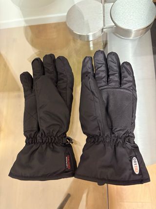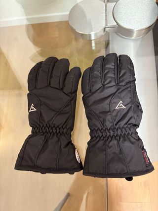 Coppia di guanti da sci neri, ideali per proteggere dal freddo. - Logo triangolare bianco sul dorso. - Polsino elasticizzato con chiusura a strappo. - Tessuto esterno resistente. - Fodera interna in materiale termico.