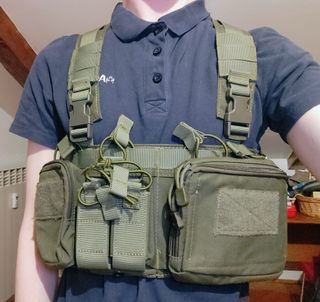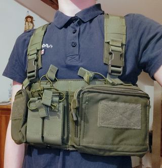 Vendo Chest Rig tattico in colorazione Olive Drab (OD), condizioni pari al nuovo, è dotato di Placard System per essere agganciato direttamente a Plate Carrier o usato come rig autonomo, veramente comodo e altamente regolabile. -Tasca admin con organizer interno. -Porta caricatori a estrazione rapida con ritenzione elastica e tasca utility laterale. Per domande non esitare a chiedere. -Leggermente trattabile.