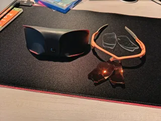 Occhiali da sole con montatura arancione e lenti intercambiabili, marca kayak. - Montatura color arancione. - Lenti trasparenti incluse. - Lenti a specchio colorate incluse. - Custodia protettiva inclusa. Accetto offerte. Usati pochissimo. Occhiali da bambino (3-13 anni) Comprati a 270.