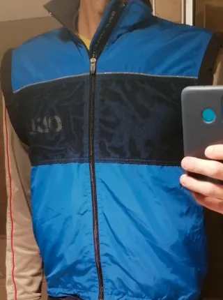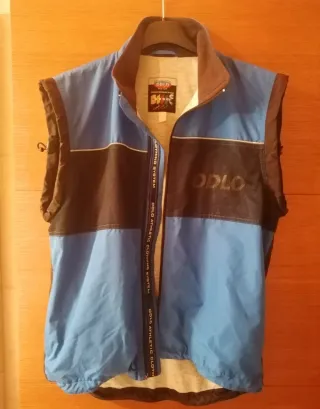 Gilet senza maniche ODLO, ideale per attività sportive. - Colore blu e nero. - Logo ODLO sul davanti. - Zip centrale. - Collo alto. - taglia M Il rivestimento interno è in cotone (in grigio nella foto) mentre il colletto (in nero nella foto) è in pile Dimensioni (vedi foto) Larghezza spalle 44 cm. Lunghezza 61 cm Circonferenza 112 cm Sono presenti elastici regolabili sulle maniche e sulla vita che permettono di adattare il gilet. Il gilet ha una leggera abrasura sulla schiena nella parte in basso a destra (si veda il dettaglio foto)