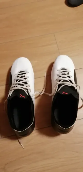 Scarpe da rugby Puma DuoFlex. - Design bicolore bianco e nero. - Logo Puma sul lato. - Lacci bianchi. - Taglia 45