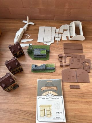 Lotto di modelli in scala 15mm. As per photos 3 houses 3d painted Bunker polistirolo 3d landed airplane (to mount) 3d barn (to mount) 3d storage house (to mount) Puzzle 3D Arc de Triomphe. - Componenti per diorami.