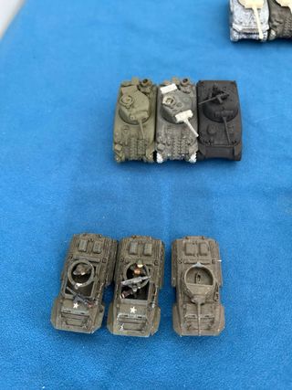 Modellini di carri armati Sherman per Flames of War. Sono presenti diversi modelli e pezzi. 4 stuart 3D prnted 2 stuart plastic battlefront 2 sherman 105/75 mn plastic battlefront 3 sherman 75 mm late plastic battlefront 5 chafee 3d printed
