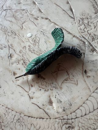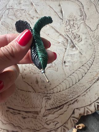 Oggetto decorativo a forma di piuma, con dettagli verdi e neri. - Materiale: acciaio - Finitura lucida.