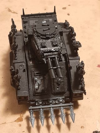 Modellino Warhammer 40k Chaos Predator. Contiene corpo in plastica e dettagli in metallo OOP. Assemblabile a piacimento.