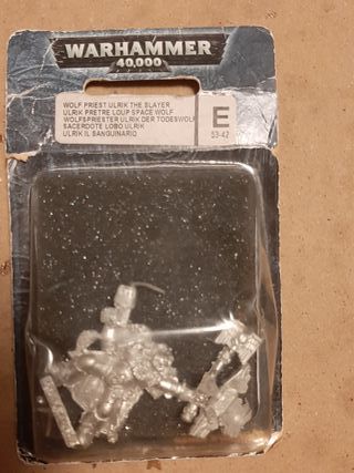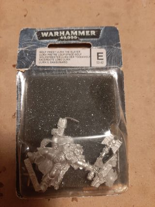 Miniatura di metallo di Ulrik the Slayer, Wolf Priest di Warhammer 40,000. Edizione Out of Print (OOP). In scatola originale.