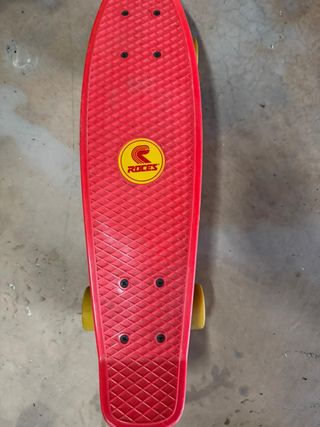 Skate Roces di colore rosso e azzurro con ruote gialle. - Logo Roces sul deck. - Superficie antiscivolo.