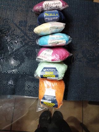 28 gomitoli in lana/cotone di Mondial, in vari colori e varie misure ( come da foto)