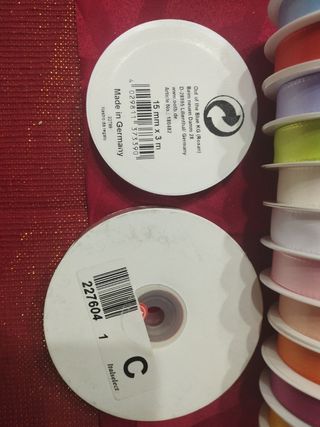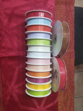 13 nastri in tessuto da 3 m caduno e 2 di organza da 10 m caduno, in vari colori