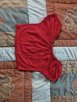 Corpetto per danza orientale/allenamenti, in cotone rosso con collo e maniche elasticizzate, misure come da foto, tg xs