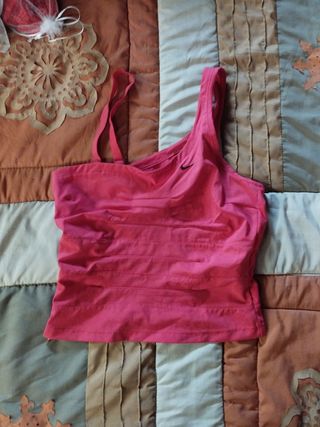 Corpetto per fitness/allenamenti tg xs di colore rosa, chiuso da una cerniera a scomparsa laterale e con una spallina interamente staccabile così da rimanere monospalla