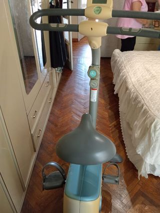 Cyclette per allenamento domestico - Manubrio imbottito per una presa comoda. - Sedile regolabile in altezza. - Pedali con cinghie di fissaggio.non spedisco