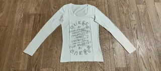 Usata in ottime condizioni. Maglietta a manica lunga, tinta unita di colore bianco, TG. L da ragazza con scollo rotondo sulla parte alta frontale, stampa frontale e tessuto 95% cotone e 5% elastan.