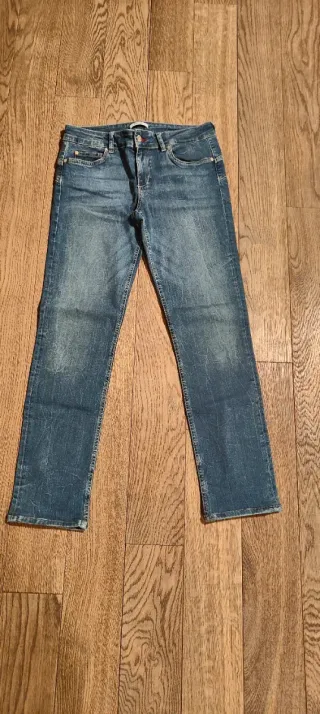 Usati in ottime condizioni. Jeans lavaggio blu chiaro TG. M da ragazza con passanti per la cintura in vita, vita regolare, tasche frontali, tasche sul retro e tessuto elasticizzato.