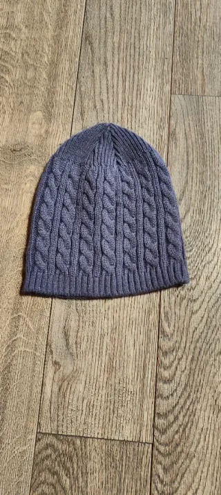 Usato in ottime condizioni. Berretto invernale, tinta unita di colore viola, taglia unica da ragazza con dettagli a intreccio e tessuto 100% acrilico.