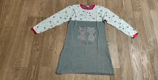 Usata in ottime condizioni. Vestaglia da notte TG. L da ragazza con piccola chiusura a bottoncini sulla parte alta frontale, manica lunga, fantasia a forma di gatti e tessuto 100% cotone. MISURE: spalle 46 cm, da ascella a ascella 48 cm e lunghezza 88 cm.