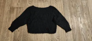 Usato in ottime condizioni. Maglione, tinta unita di colore nero, TG. S/M da ragazza con manica 3/4 e tessuto 80% acrilico, 12% lana e 8% alpaca. MISURE: spalle 46 cm, da ascella a ascella 64 cm e lunghezza 52 cm.